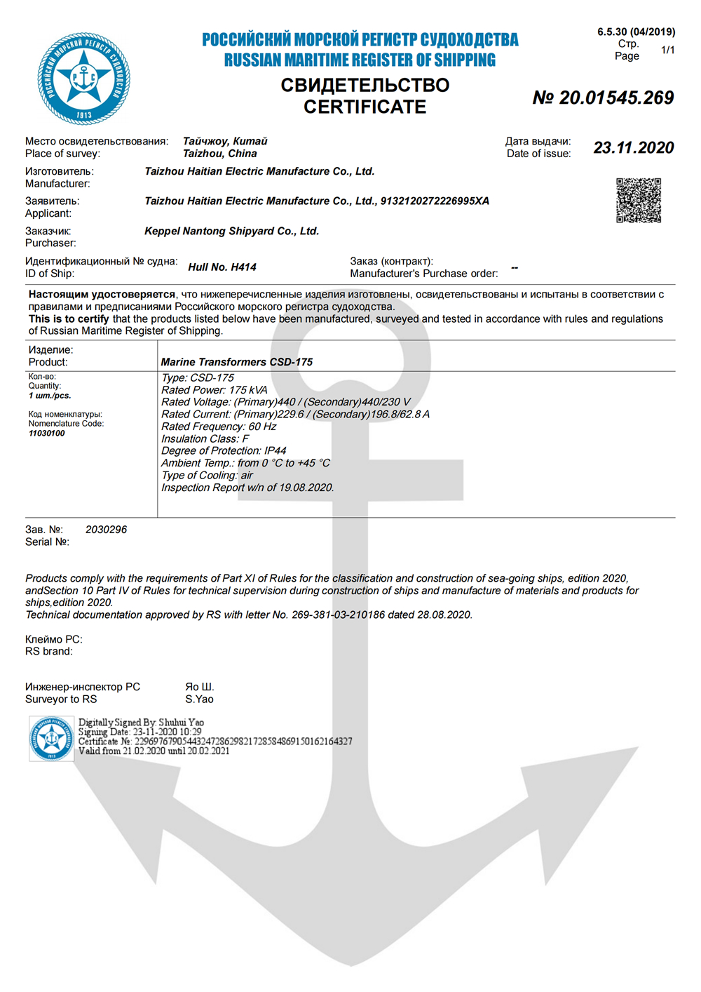 产品类型:船用变压器